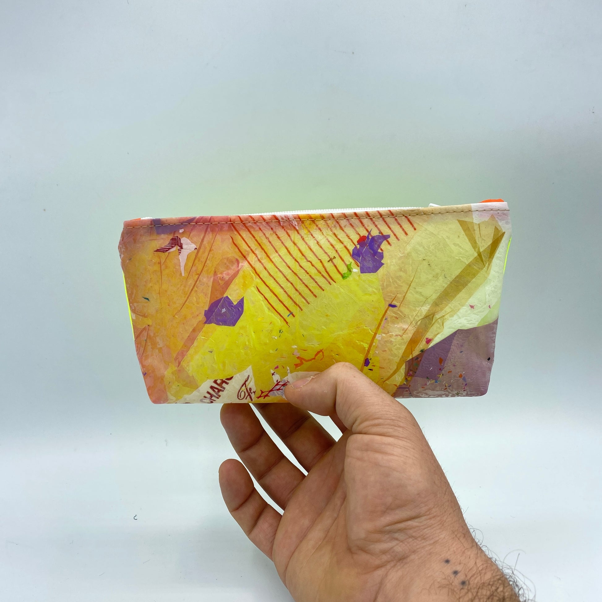 Création unique réalisée à partir de sac plastique up-cyclé et de voile de bateau.