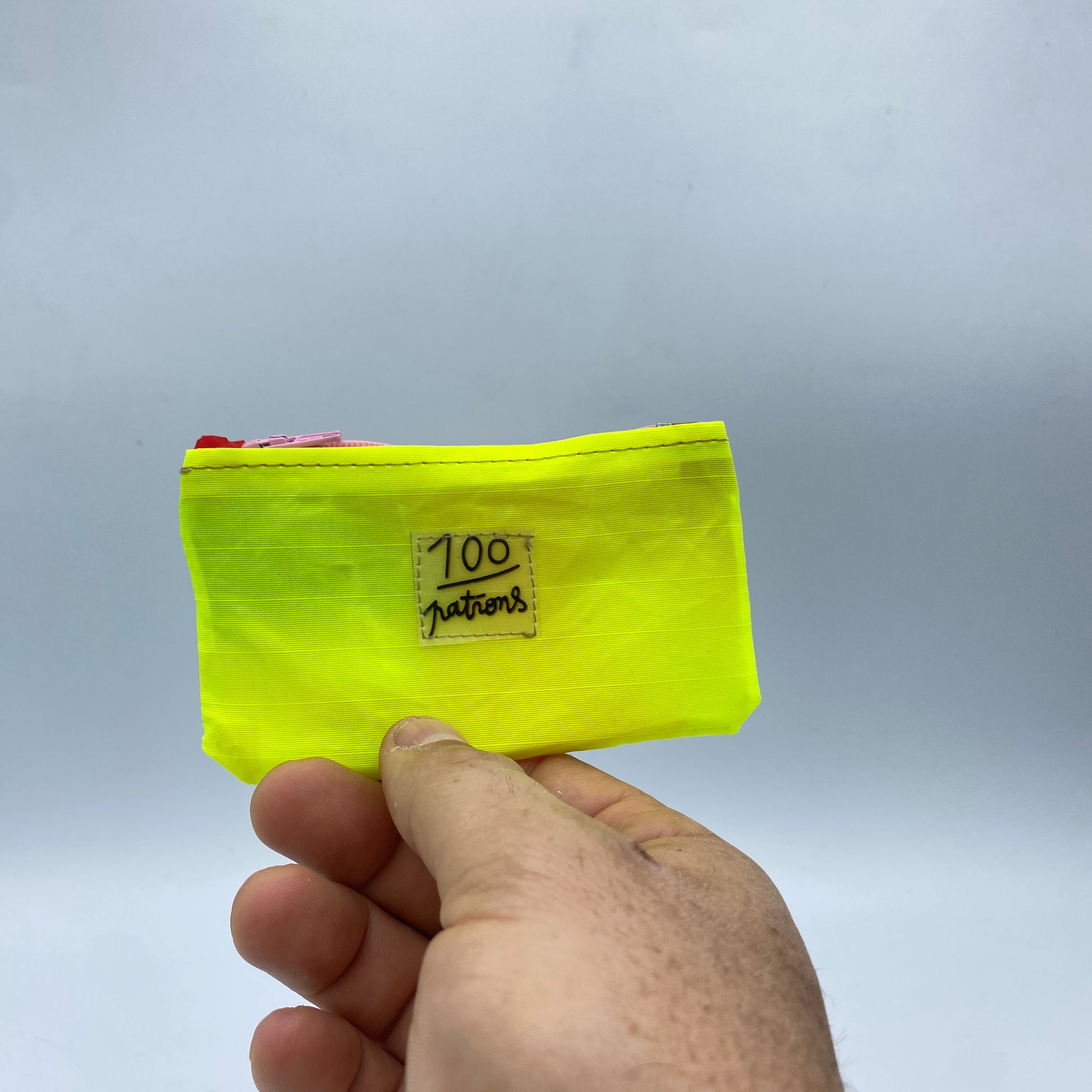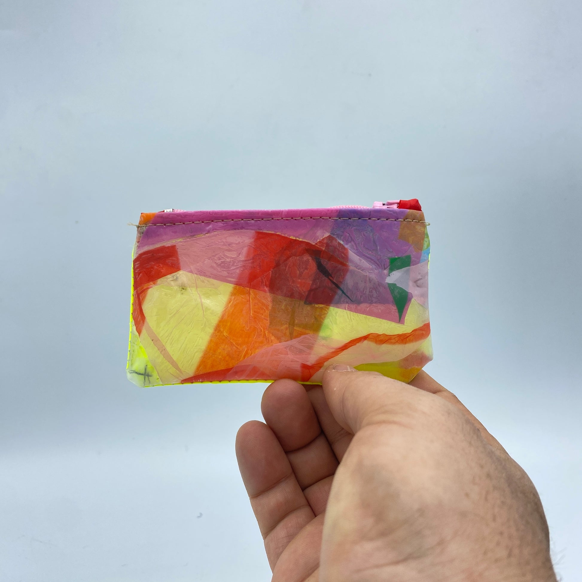 Ce porte-monnaie est entièrement fabriqué à la main dans notre atelier à partir de sacs plastiques upcyclés et de voile de bateau recyclée.